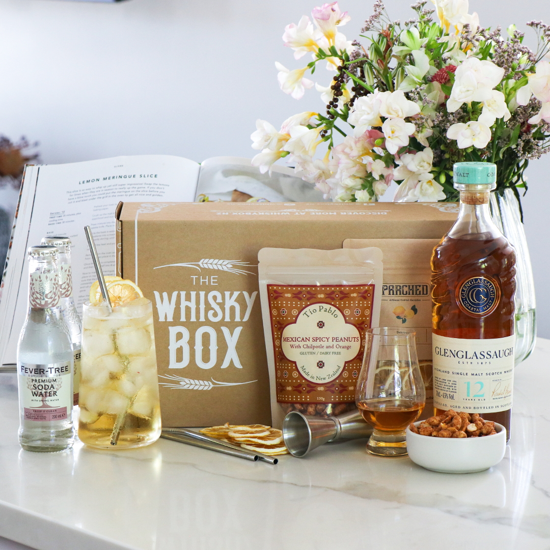 A stainless steel jigger, highball glass, and stainless steel straws round out the box as the perfect barware essentials for making and enjoying classics like a whisky highball with the perfect measure and easy sipping.