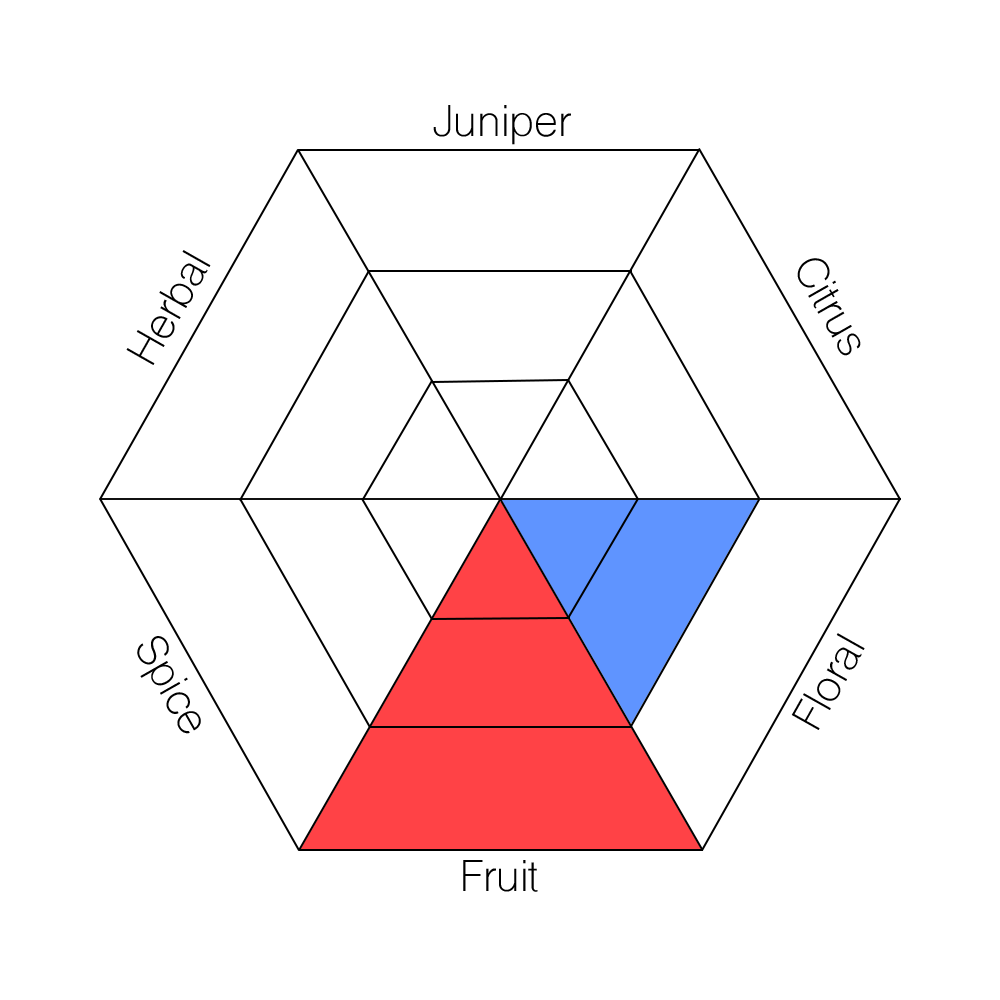 The main taste profiles in gin are: Juniper, Citrus, Floral, Fruit, Spice, and Herbal.